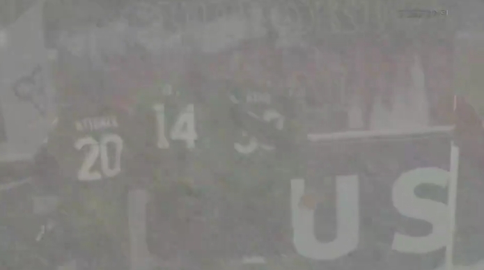 注意左下角????達洛特過掉門將后,場邊齊爾克澤高舉雙臂慶祝