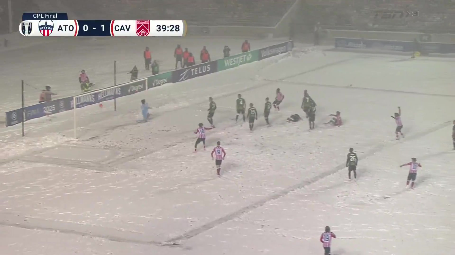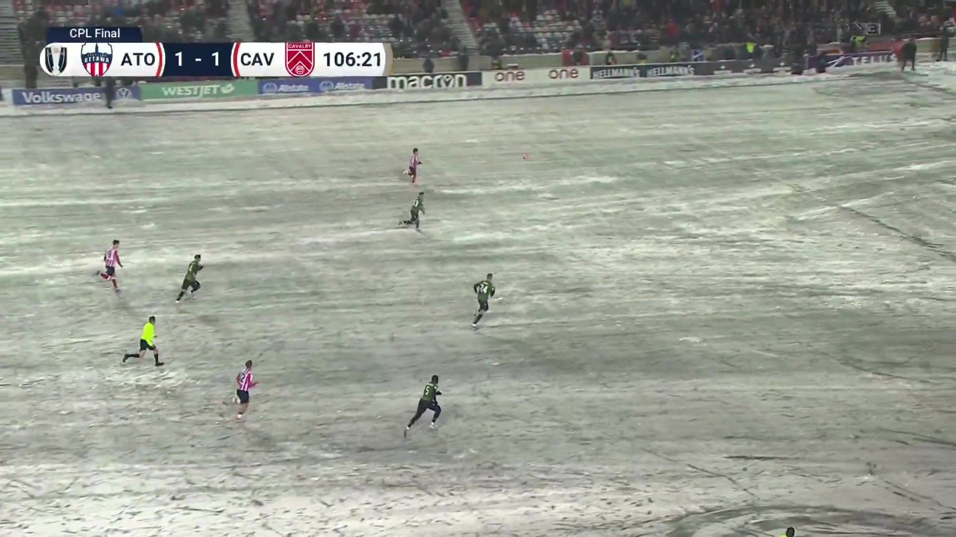 11月10日訊 加拿大職業聯賽總決賽,踢雪天飄渥太華2-1擊敗騎兵隊。球加